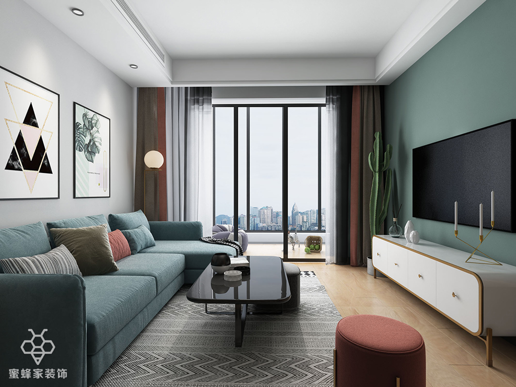 客厅 高级的绿色,浅浅的黄色、淡淡的蓝色,使用这些浅色再搭配上选材,整体呈现出一个清新、自然、有氧的居住空间。