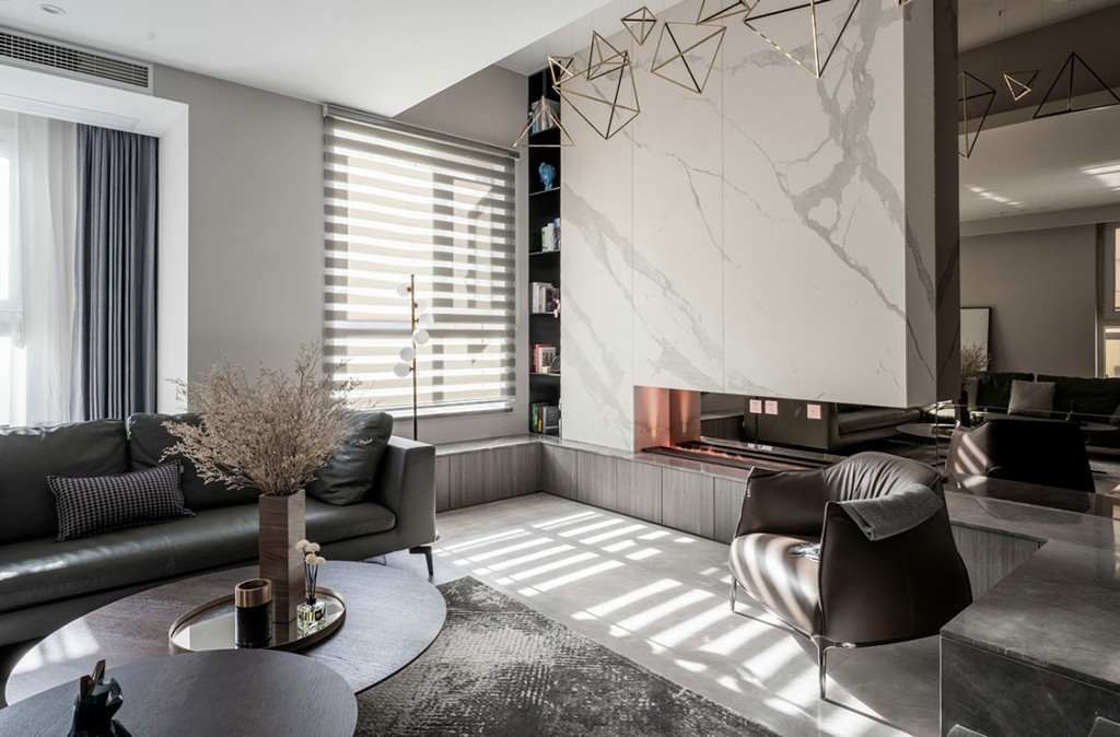 在设计师的精心展布下,本案的客厅和餐厅都不显得张扬肆意,这两个不同的空间,或者属于融融乐乐回家吃饭的亲人,或者属于三五知己品茶倾谈的友朋,显得既足够私密而又有精神上的延展性。